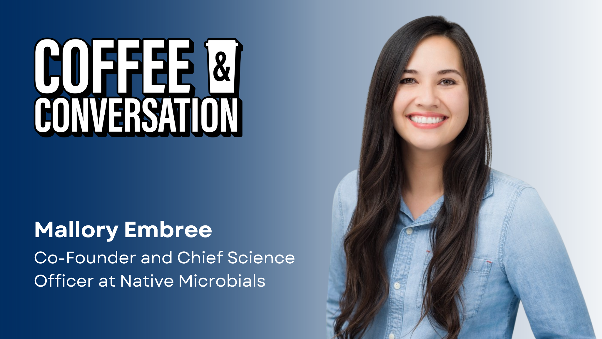 Join us for our first 2024 session of Coffee and Conversation, featuring Dr. Mallory Embree, Chief Science Officer and technical co-founder of Native Microbials. Dr. Embree brings a wealth of knowledge and experience, derived from her extensive academic and research background in bioengineering and microbial communities.