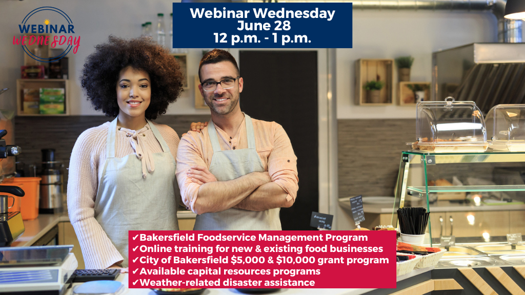 A new food business training program with ties to a City of Bakersfield grant program is among topics of this week’s free webinar presented by the Small Business Development Center at CSU Bakersfield.