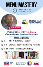 Join Tom Bruce from Central Coast Food and Beverage as he shares strategies to refresh your menu for post-pandemic operations. It's a great opportunity to review pricing strategy, improve productivity and position your restaurant for more profitable operations. Register for one or all 3...