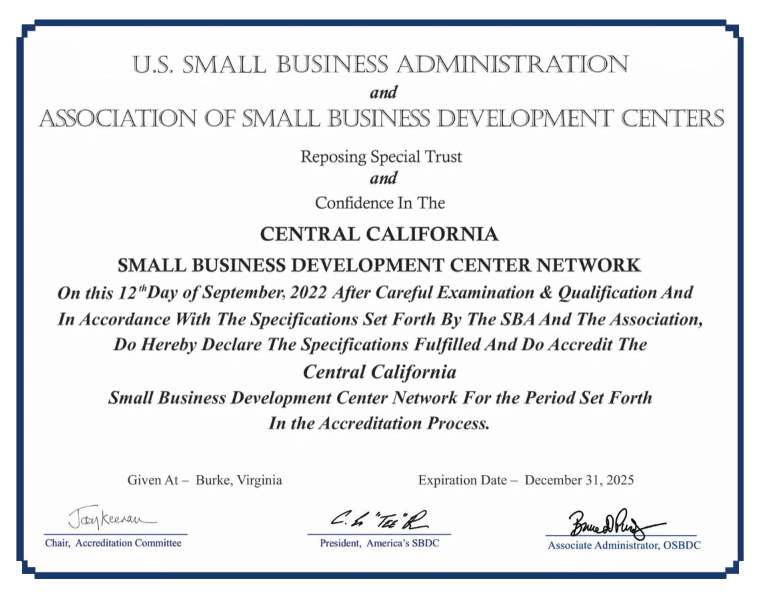 The Central California SBDC Network is an accredited member of America's SBDC.