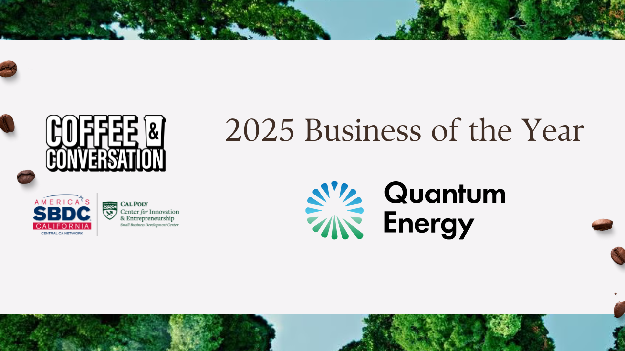 Join the SBDC this month for a special Coffee & Conversation featuring Quantum Energy, our center’s Business of the Year winner! Quantum Energy is dedicated to advancing sustainable energy solutions while reducing impacts on public health, ecosystems and the economy. Hear directly from Andrew DeMille, Founder and CEO, about their inspiring journey toward success, commitment to sustainability, and the powerful impact they’ve made within our community and beyond.